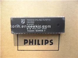 TDA9361PS/N2/3/0713 features: (1)Can be used in both single scan (50 or 60 Hz) and double scan (100 or 120 Hz) applications; (2)YUV input and linear RGB input with fast blanking; (3)Separate OSD/text input with fast blanking or blending; (4)Black stretching of non-standard luminance signals; (5)Switchable matrix for the colour difference signals; (6)RGB control circuit with Continuous Cathode Calibration (CCC), plus white point and black level offset adjustment; (7)Blue stretch circuit which offsets colours near white towards blue; (8)Internal clock generation for the deflection processing, which is synchronized by a 12 MHz ceramic resonator oscillator; (9)Horizontal synchronization with two control loops and alignment-free horizontal oscillator; (10)Slow start and slow stop of the horizontal drive pulses; (11)Low-power start-up option for the horizontal drive circuit; (12)Vertical count-down circuit; (13)Vertical driver optimized for DC-coupled vertical output stages; (14)Vertical and horizontal geometry processing; (15)Horizontal and vertical zoom possibility and vertical scroll function for application with 16 : 9 picture tubes; (16)Horizontal parallelogram and bow correction; (17)I2C-bus control of various functions; (18)Low dissipation.